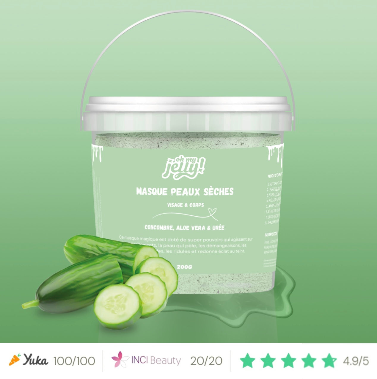 Nos masques Jelly sont composĂ©s Ă Â 98 % dâingrĂ©dients dâorigine naturelle.